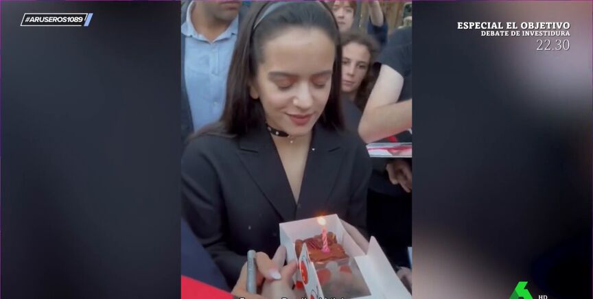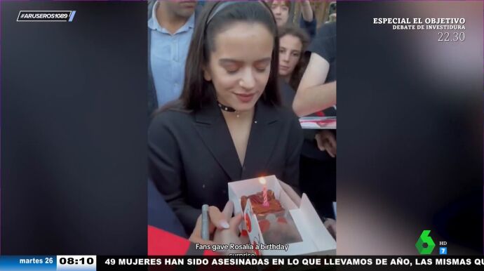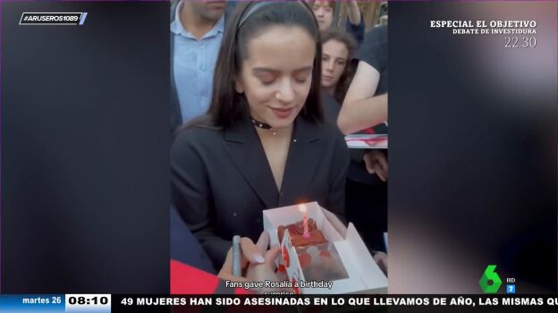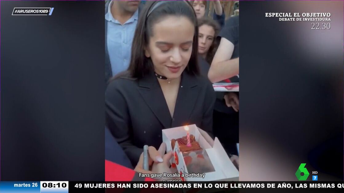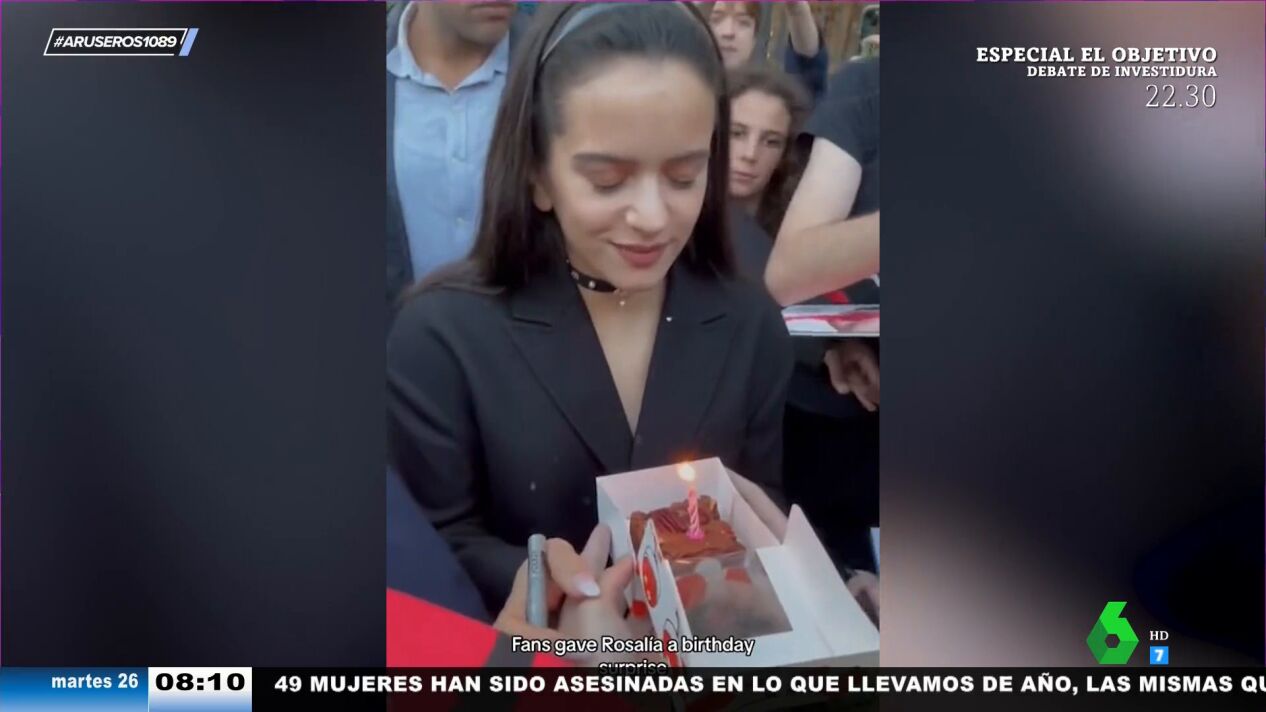 Rosalía ha sido sorprendida por un grupo de fans que la esperaba a la salida de su hotel en París para felicitarla y cantarle el 'Cumpleaños feliz'.