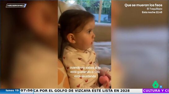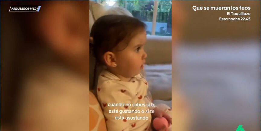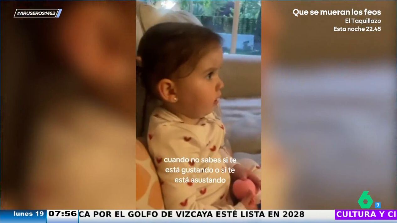 La canción ha llegado hasta el plató de Aruser@s, donde han mostrado la graciosa reacción que ha tenido una niña al ver la actuación. "Cuando no sabes si te está gustando o asustando", dice la madre, que muestra la cara de desconcierto que ha puesto su hija frente a la televisión.