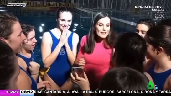 Lareina Letiziaha disfrutado de un plan deportivo "fuera de su agenda" y ha presenciado un partido de waterpolo femenino, informa Tatiana Arús en Aruser@s. Tal y como se muestra en el vídeo principal de esta noticia, doña Letizia incluso se hizo un selfi con las jugadoras.
