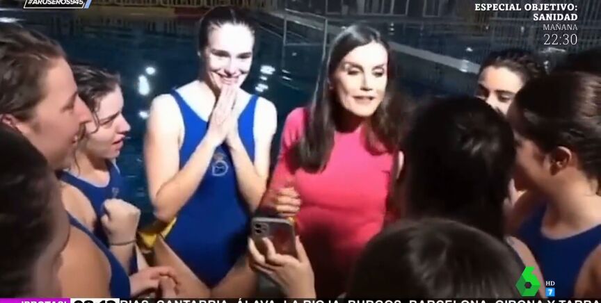 La reina Letizia asistió a un partido de waterpolo femenino, una actividad que estaba fuera de su agenda. Doña Letizia accedió a hacerse un selfi 'BeReal' con las jugadoras, para lo que tuvo que sostener el teléfono durante 20 segundos.