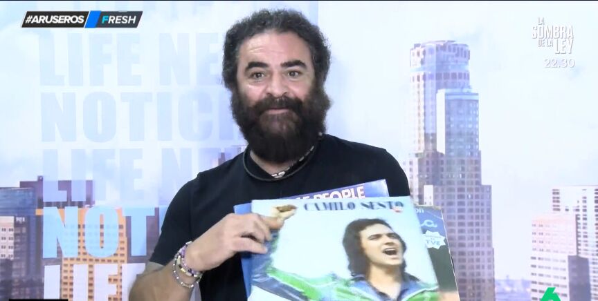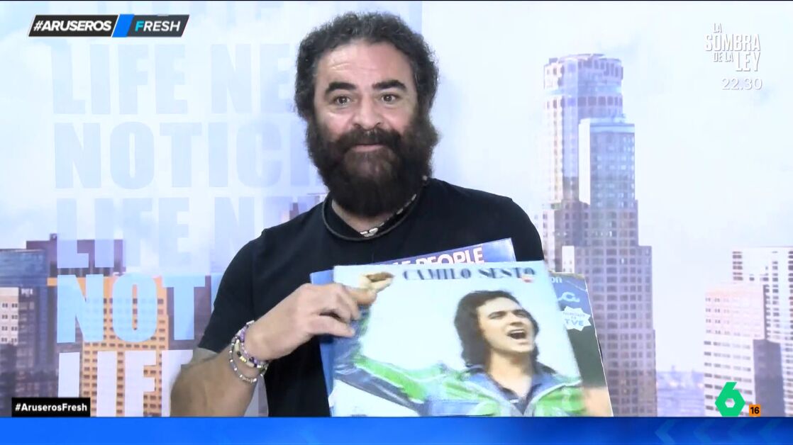 Pero lo que más impresiona al presentador de Aruser@s no es la cantidad, sino la variedad. "Tiene a Los Pecos al lado de Madonna, todo guarda una coherencia". Rápidamente, su atención se centra en el disco que ha mostrado de Camilo Sesto. "¿Es el de 'Amor amar'?", pregunta con curiosidad.