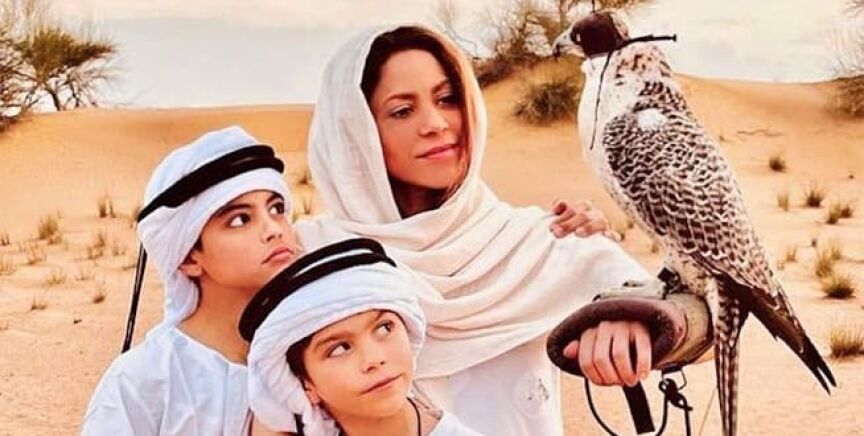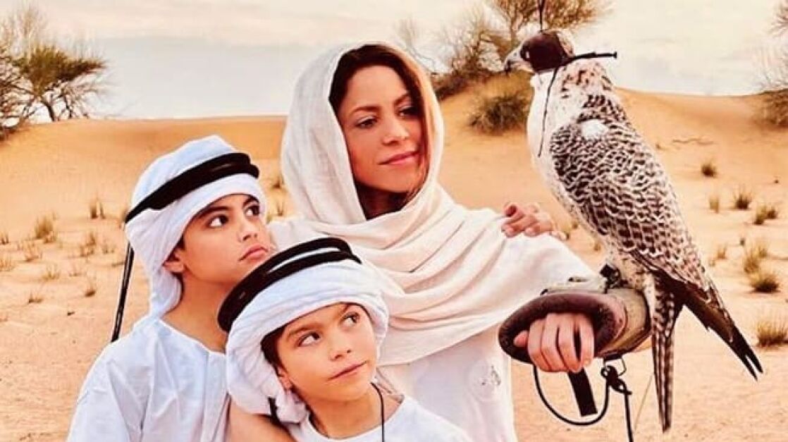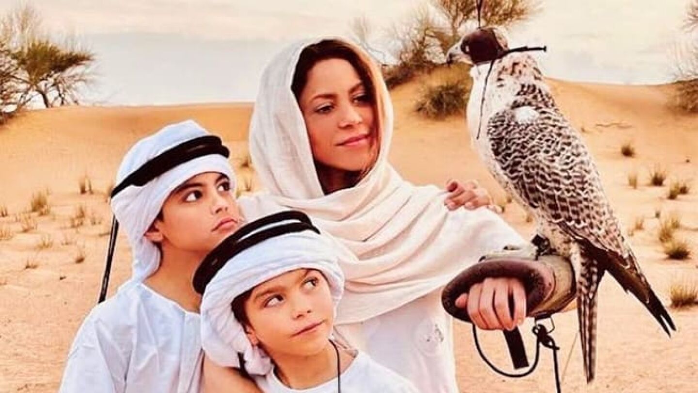 La artista ha sorprendido a todos sus seguidores con una foto junto a sus hijos, Milan y Sasha, y un halcón adiestrado en unas dunas de Dubái.