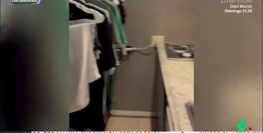 "Tenemos una nueva novedad", indica al presentador del programa, que avanza que "se trata del novedoso armario-cocina". El joven que graba el vídeo muestra lo que esconde la puerta que al parecer es un ropero. Al abrir, el chico comprueba cómo a un lado tiene varias perchas donde poder colgar la ropa y al otro lado, en cambio, una diminuta cocina.