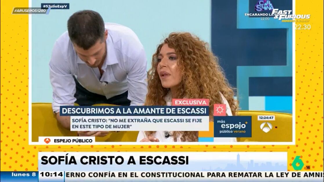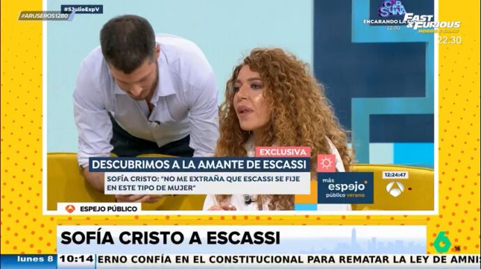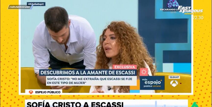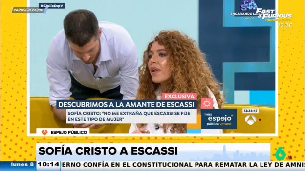 Sofía Cristo es preguntada en Espejo Público por Álvaro Muñoz Escassi. "Tú que lo conoces, ¿te cuadra con el perfil de la gente que ha estado con él?", pregunta un tertuliano a la invitada, que le responde que "a mí me cuadra que Álvaro se tire a un agujero en una pared".