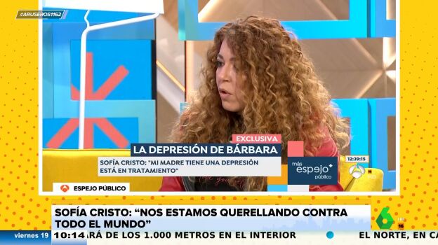 Alfonso Arús enseña en el plató de Aruser@s el tajante mensaje de Sofía Cristo a todas las personas que han estado hablando mal de su madre, Bárbara Rey. "Verónica Forqué no parecía que estaba sumida en una depresión antes de suicidarse", afirma la dj en 'Espejo Público', donde destaca que toca madera y espera que su madre se ponga bien y se recupere.