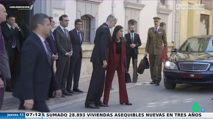 Incluso, los ciudadanos pidieron a los escoltas que se apartaran para poder sacar una imagen de los reyes. "Solo una foto, señores escoltas", pide una mujer, que afirma que no ve nada. Angie Cárdenas reflexiona sobre la posición de los escoltas: "Qué bonito, pero los escoltas están haciendo su trabajo". "Es verdad que son muy altos, pero si se apartan un poco los ponen en peligro", detalla la colaboradora de Aruser@s.