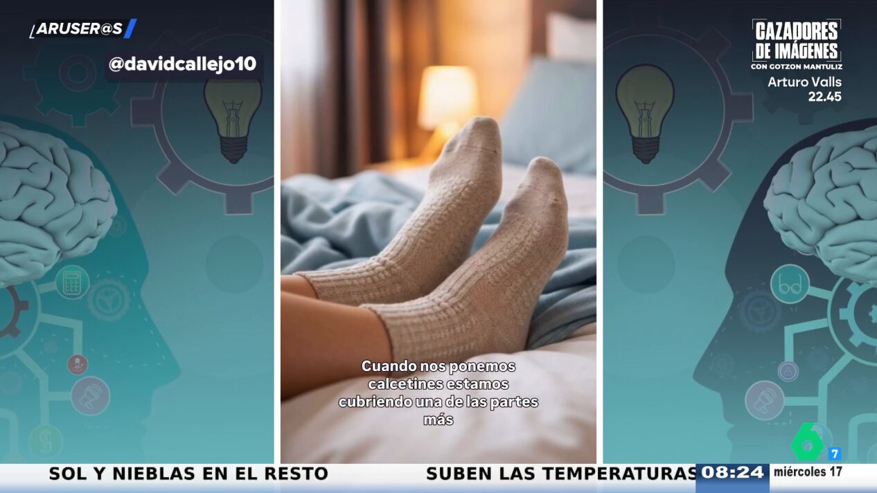 "Para dormir tenemos que bajar nuestra temperatura interna y, cuando nos ponemos calcetines, estamos cubriendo una de las partes más externas de nuestro cuerpo, los pies. Al cubrirlos, provocaremos una vasodilatación. Los vasos sanguíneos de los pies se van a hinchar y van a permitir que por ahí eliminemos el calor interno, permitiendo bajar la temperatura interna mucho más rápido", asegura.