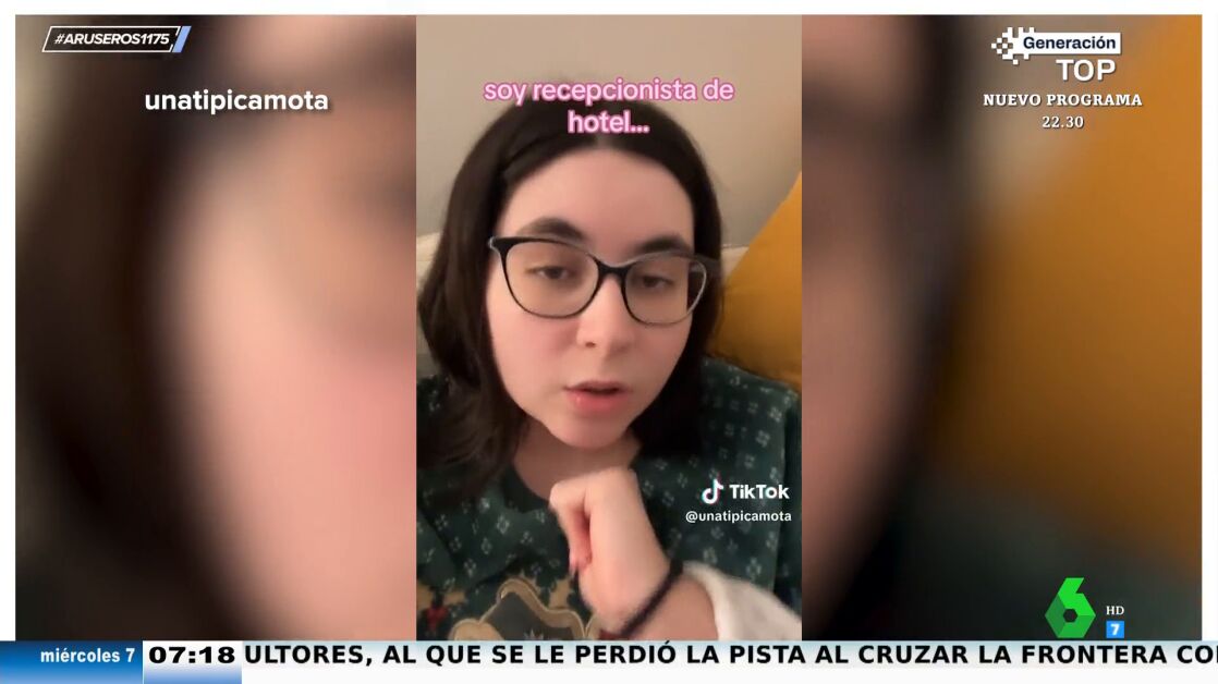 La tiktoker @unatipicamota es recepcionista de hotel y en este vídeo viral, hace gala de un poquito de mala leche y una alta dosis de sinceridad. Sus palabras enfadan a Alfonso Arús, que responde con contundencia a sus comentarios.