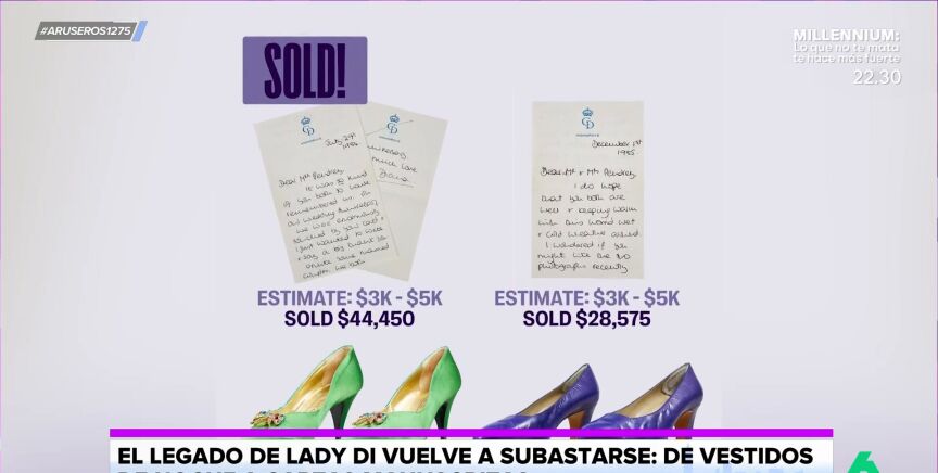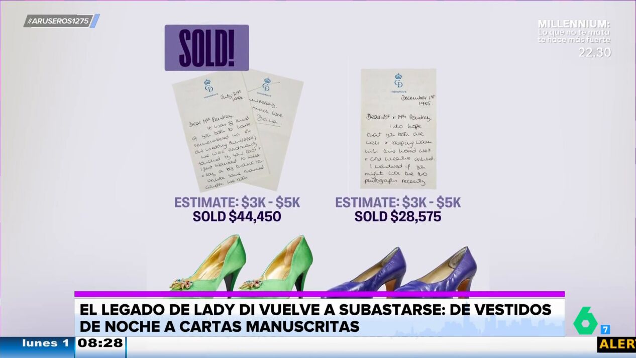 "Cada vez que se subastan productos de la princesa Diana de Gales se superan todas las expectativas", destaca Tatiana Arús. El Julien's Auction subasta 200 productos pertenecientes a Lady Di. Entre los artículos subastados se puede ver desde un vestido que utilizó para ir a ver 'El fantasma de la ópera' a cartas y postales personales.