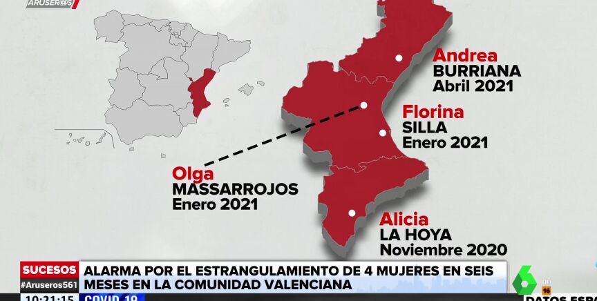 Se trata de Andrea, Olga, Florina y Alicia cuyos cuerpos se hallaron en las localidades de La Hoya, Massarrojos, Silla y Burriana entre noviembre de 2020 y abril de 2021.
