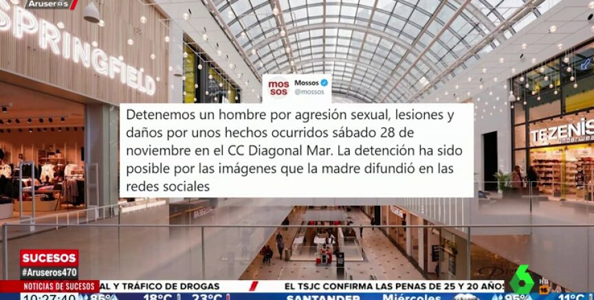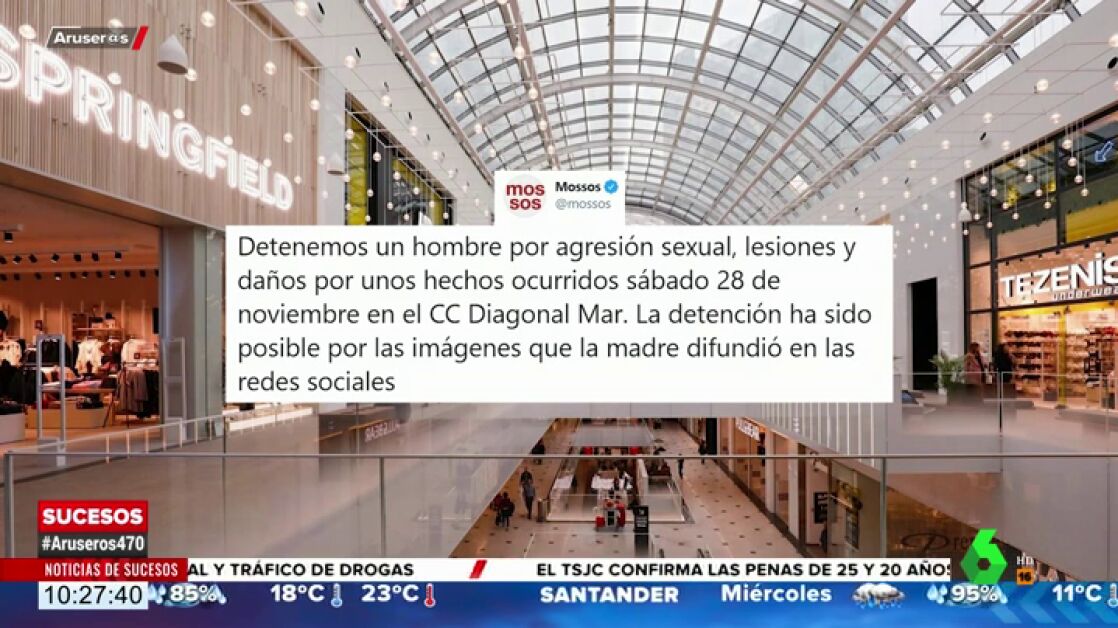 Los Mossos d'Escuadra han detenido al hombre que habría abusado presuntamente de una niña de 14 años en el centro comercial Diagonal Mar de Barcelona. Así lo ha anunciado el cuerpo a través de su cuenta oficial de Twitter donde ha informado que la detención ha sido posible gracias a las imágenes que colgó la madre de la menor en redes sociales.