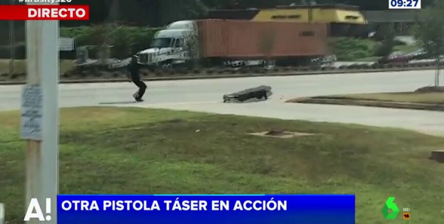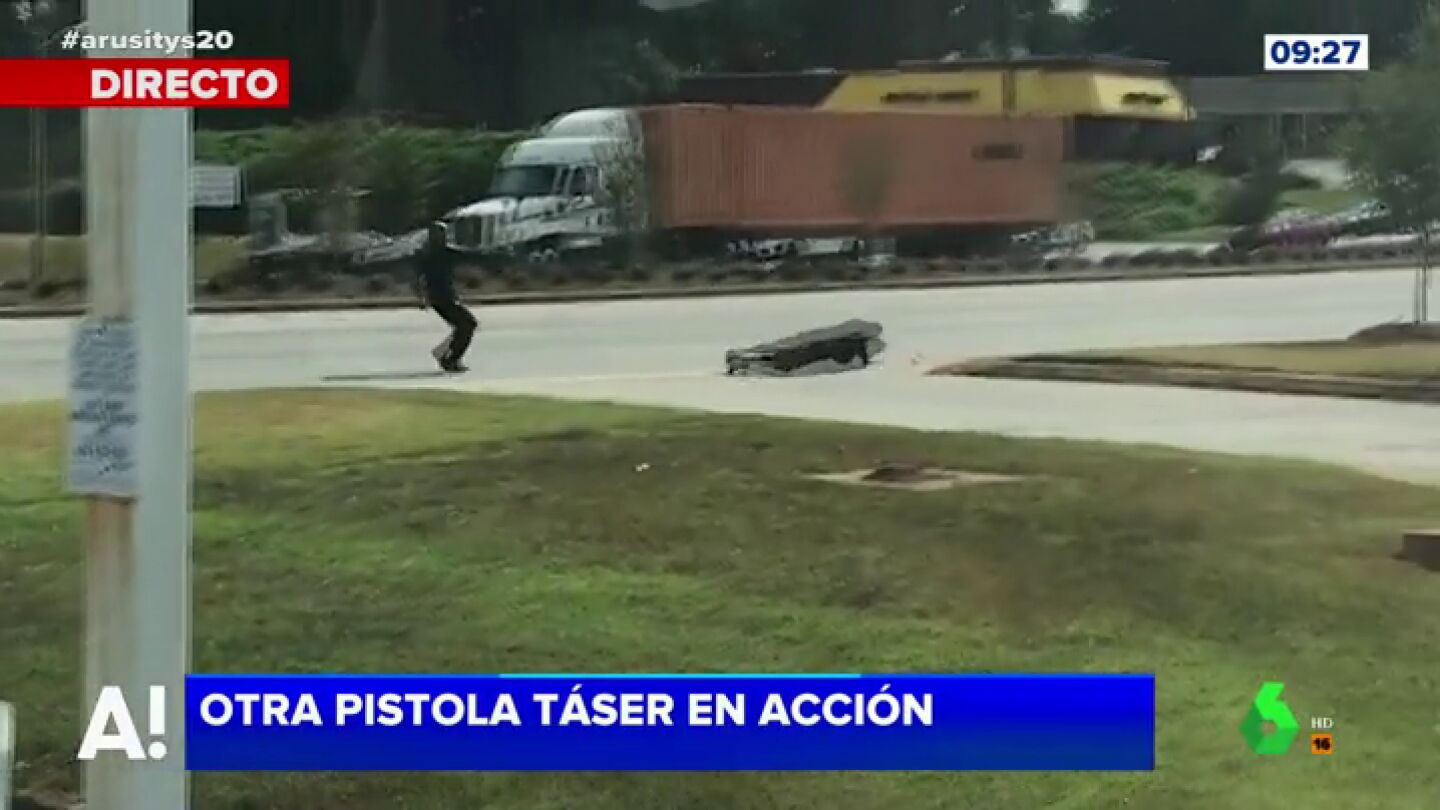 Un policía en Estado Unidos dispara con su pistola táser a un delincuente que huye y "le hace caer como un saco de patatas". Carlos Quílez destaca en Arusitys"la contundencia y la potencia de este tipo de armamento".