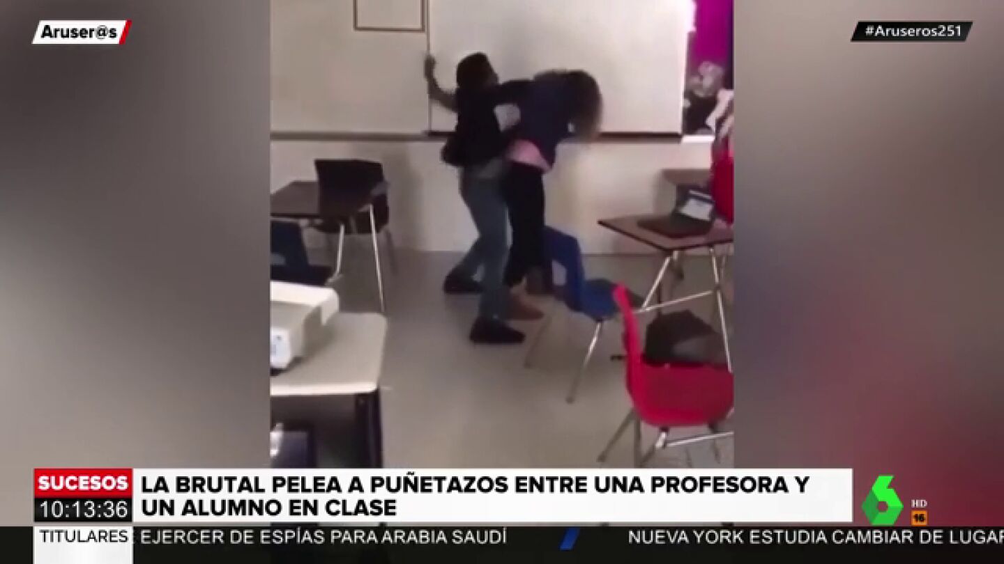 La brutal pelea a puñetazos entre una profesora y un alumno en clase