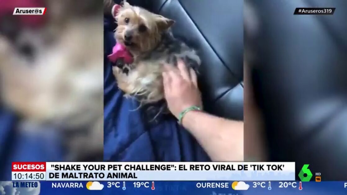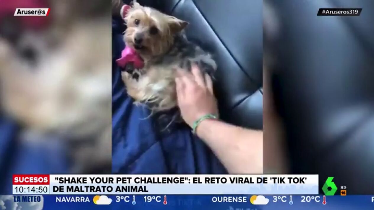 El reto viral consiste en golpear a tu mascota y sacudirla teniendo como único propósito molestarles y hacerles enfadar. En las imágenes comentadas por Aruser@s se ve cómo los dueños sacuden y dan golpes en la cabeza a los animales para grabar su reacción y conseguir más visualizaciones y 'likes'.