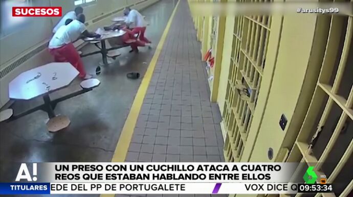 Un preso apuñala con un cuchillo a otros cuatro reclusos que estaban esposados a una mesa