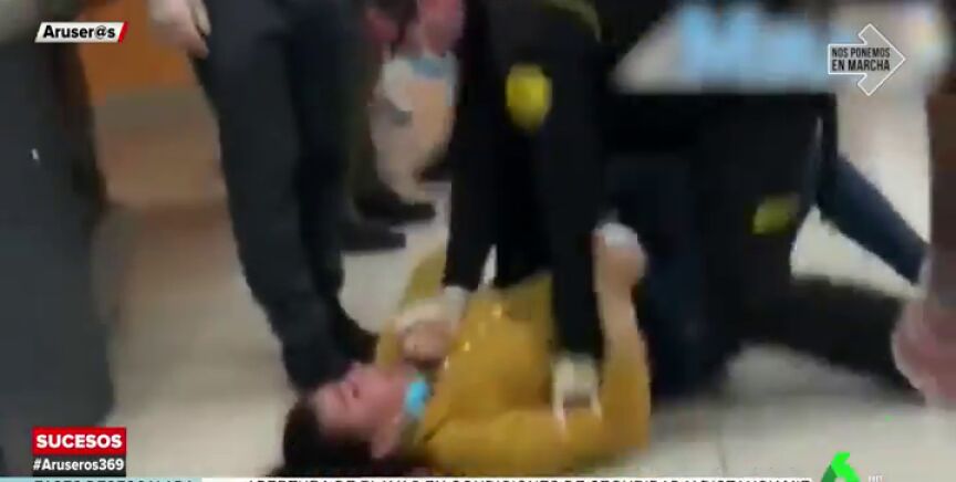 Más tarde, un grupo de boinas verdes del Mando de Operaciones Especiales proceden para llevarse detenida a la mujer tras las agresiones. Mientras está reducida en el suelo la agresora insta a otra mujer a que ataque a los militares: "Pégales un cabezazo".
