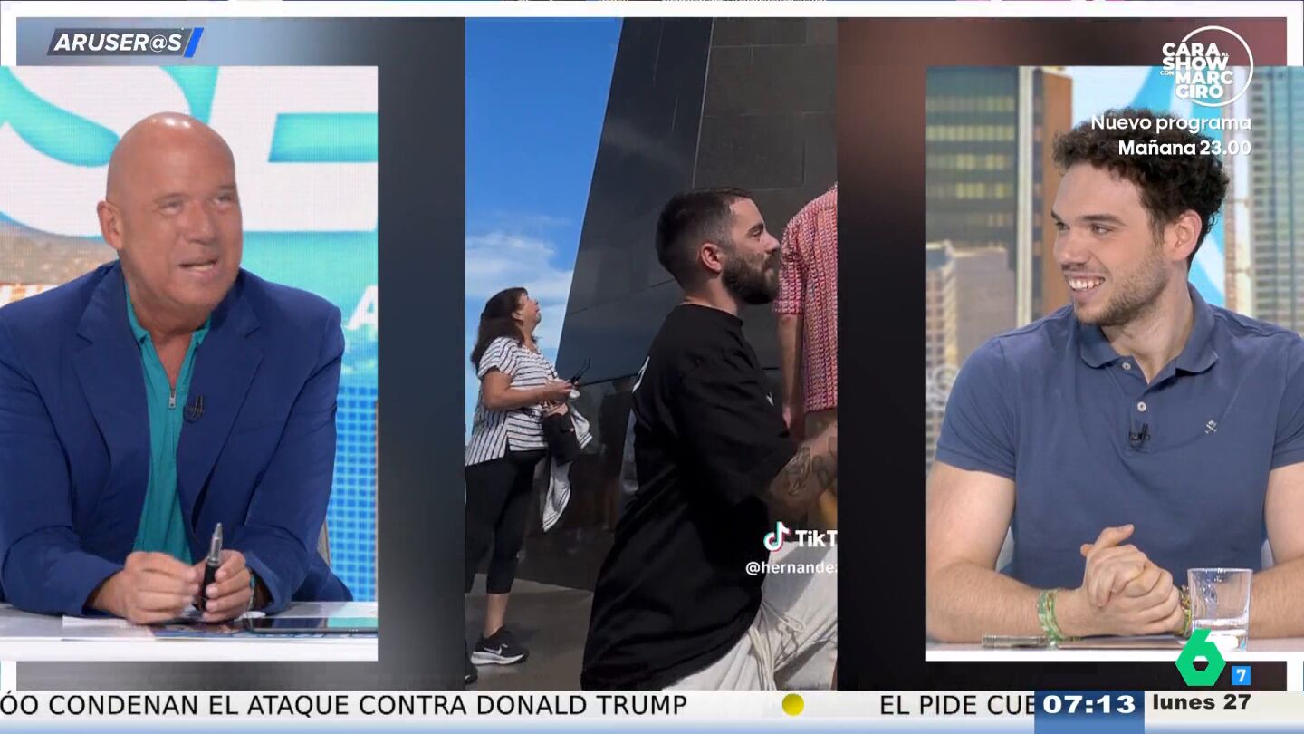 Alfonso Arús disfruta de lo lindo con este vídeo viral de una pedida de mano que arrasa en internet debido a la metedura de pata de la suegra. "La que veis a la izquierda con círculo rojo es la madre de la novia", indica Hans Arús en Aruser@s. Y es que la mujer, que estaba admirando el Cristo Redentor de Brasil, una de las maravillas del mundo, no se dio cuenta de que tan solo unos pasos más allá, su yerno estaba pidiéndole matrimonio a su hija. Cuando por fin lo vio, casi interrumpe el momento, pero por suerte, una familia la apartó rápidamente. Una escena que puede verse al completo en la grabación. "No me estropee el vídeo, señora", resume el presentador del programa de laSexta, que celebra que en esta ocasión no todo saliera perfecto. Porque a veces, las cosas más divertidas surgen de lo inesperado.