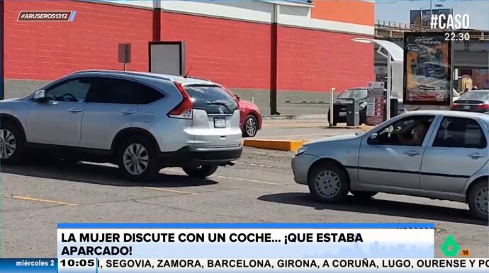 Finalmente, la mujer se da cuenta de que el coche está aparcado y que no está el conductor. La señora estaba discutiendo sola. En el plató de Aruser@s, todos ríen con esta surrealista historia y comentan que es evidente que la protagonista del vídeo está en un parking.