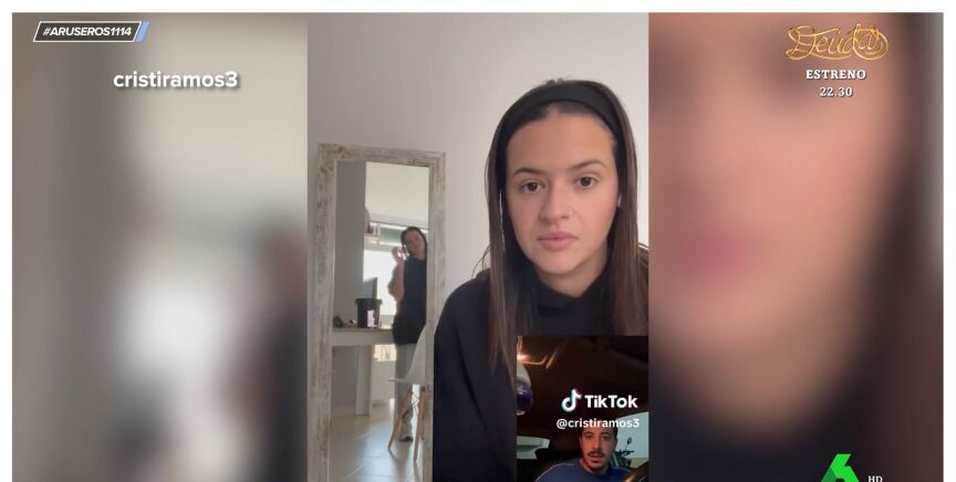 Hans Arús enseña en el plató de Aruser@s la broma viralde una joven a su novio que ha superado los 17 millones de visitas en Internet. El joven alucina al ver cómo mientras habla con su novia a través de una videollamada el espejo hace cosas extrañas.