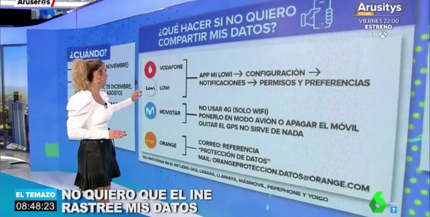 Alba Sánchez da algunos trucos en este vídeo de Aruser@s para evitar que el Instituto Nacional de Estadística rastree tu dispositivo móvil para un estudio sobre desplazamientos.
