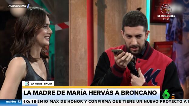 La actriz María Hervás ha acudido al plató de La Resistencia junto a su compañera de profesión Irene Esser para hablar con David Broncano sobre la nueva temporada de su serie, 'El Inmortal'. En un momento dado de la entrevista, el presentador llama por teléfono a la madre de Hervás, quien previamente había advertido a Broncano que llevaban tiempo sin hablar porque estaban enfadadas.