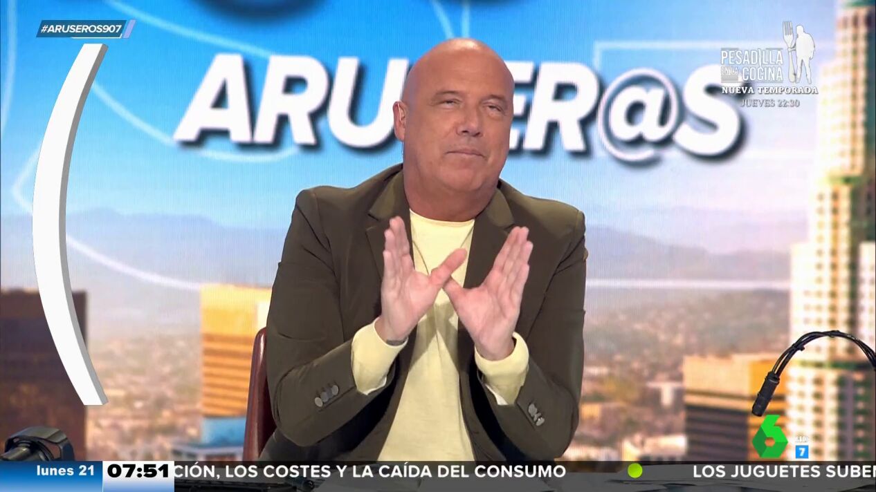 "Me falta elaborarla bien", reconoce Alfonso Arús acerca de esta teoría que ha lanzado en Aruser@s. "Elrey Felipe tiene menos gallos en el discurso cuando habla en inglés que en castellano", asegura el presentador del programa.