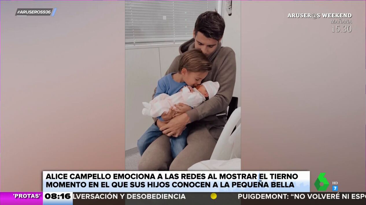 "Ya tenemos las imágenes del momento en el que los tres pequeños conocen a Bella", anuncia Tatiana Arús. En este vídeo de Aruser@s somos testigos de este bonito primer encuentro, en el que los hijos deÁlvaro Morata y Alice Campello conocen por fin a su hermana recién nacida.