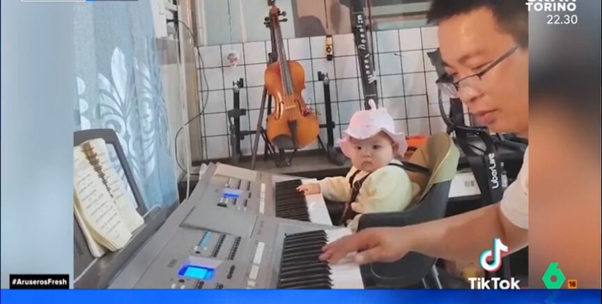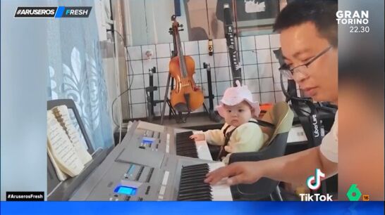 El vídeo desató la risa en el plató de Aruser@s. Angie Cárdenasdestaca cómo una niña tan pequeña es capaz de esperar a que su padre termine de tocar para empezar ella, mientras que Alba Gutiérrez resaltaba que "su papá es más de música clásica y ella es más de jazz".