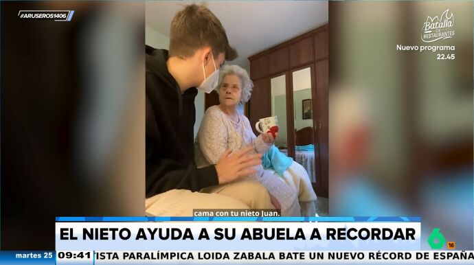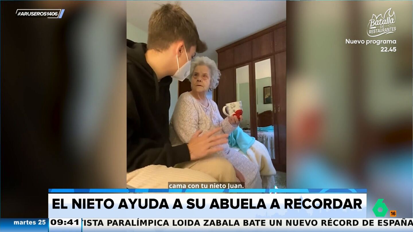Los tertulianos de Aruser@s aplauden el "entrañable esfuerzo" que está haciendo Juan López para que su abuela, con Alzheimer, pueda recordar quién es su familia y pequeñas vivencias personales.
