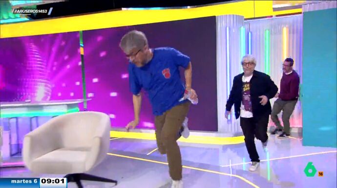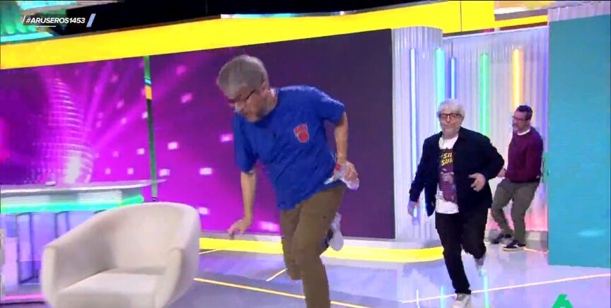 El momento del incidente es captado por las cámaras del programa y Alfonso Arús no duda en pedir a realización la repetición para comentar con el accidentado lo ocurrido. "Casi me mato", comenta asustado. "Estoy mayor", lamenta.