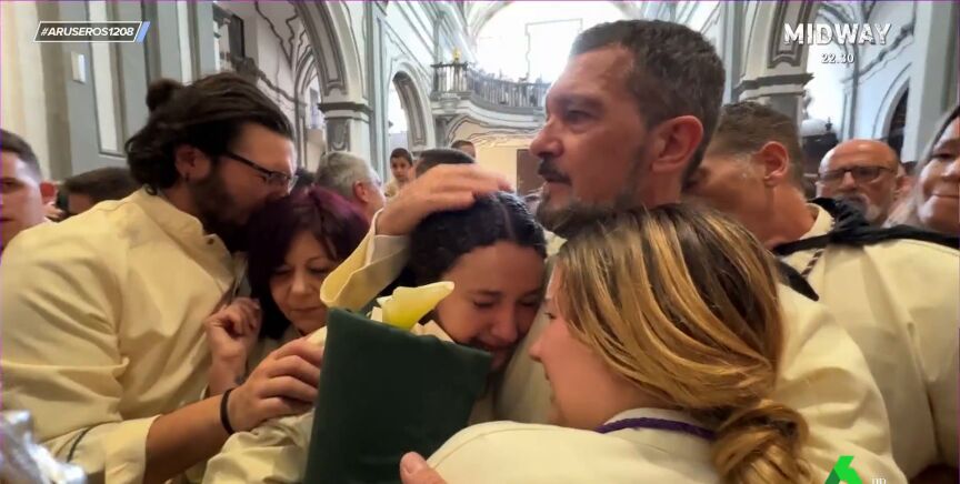 Antonio Banderas se ha mostrado desolado tras la cancelación de la procesión de su cofradía por culpa del tiempo. En el último momento decidieron no salir y la gente se desmoronó, como se puede ver en el vídeo principal de esta noticia, donde el actor consuela a varias de las jóvenes. Junto a su mujer, Banderas explica que "hay que aceptar lo que manda el cielo": "Se ha tomado la decisión correcta por parte de la cofradía, es lo que tocaba este año".