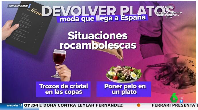 Que si llevan algún ingrediente no especificado en la carta. Que si el punto de cocción no es el correcto. Que si ya no tienen hambre y han pedido demasiado. Muchas son las excusas que algunos clientes les ponen a los restaurantes cuando quieren devolver algún plato de los que han pedido y lo cierto es que esta tendencia, que procede de Reino Unido, ya está llegando a España, denuncian algunos hosteleros en un artículo de La Vanguardia del que se hacen eco en Aruser@s.