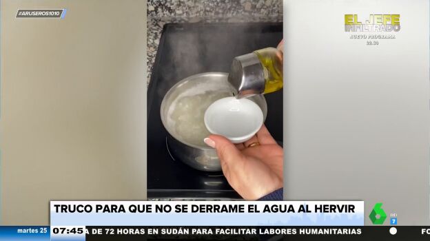 Para evitarlo, solo tenemos que pintar el borde del cazo con aceite, tal y como demuestra este vídeo que enseña Angie Cárdenas en su sección 'Consejito, consejito'. "Incluso yo he pensado que antes de ponerla al fuego, igual ya le puedes poner el aceite en el borde", comenta la colaboradora.