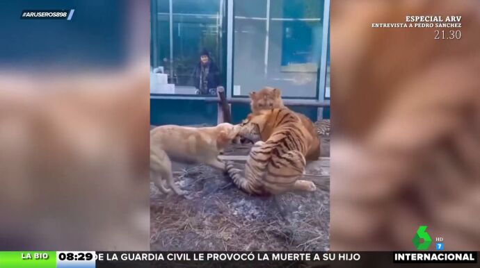 Evelyn Segura, bióloga de cabecera de Aruser@s, explica en el programa el truco que esconde este vídeo que se ha viralizado en los últimos días en el que podemos ver a una perra mordiendo a unos tigres.