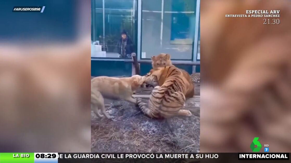 El 'truco' que esconde este vídeo viral de una perra enfrentándose a unos tigres
