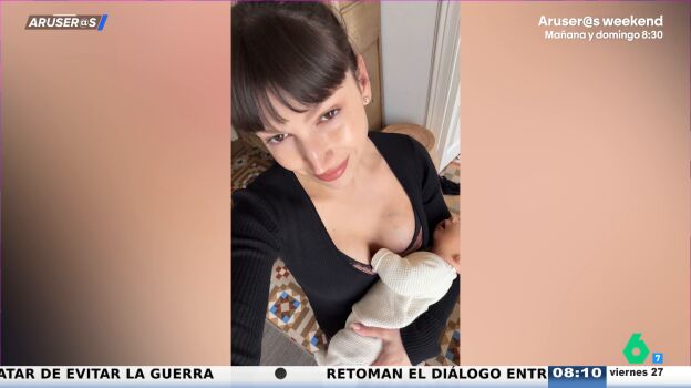 Úrsula Corberó ha publicado una tierna fotografía junto a su hijo, Dante. "Qué bonita la fotografía", destaca Tatiana Arús, que explica en el plató de Aruser@s que "el pequeño tiene muy bien agarrada a su madre".