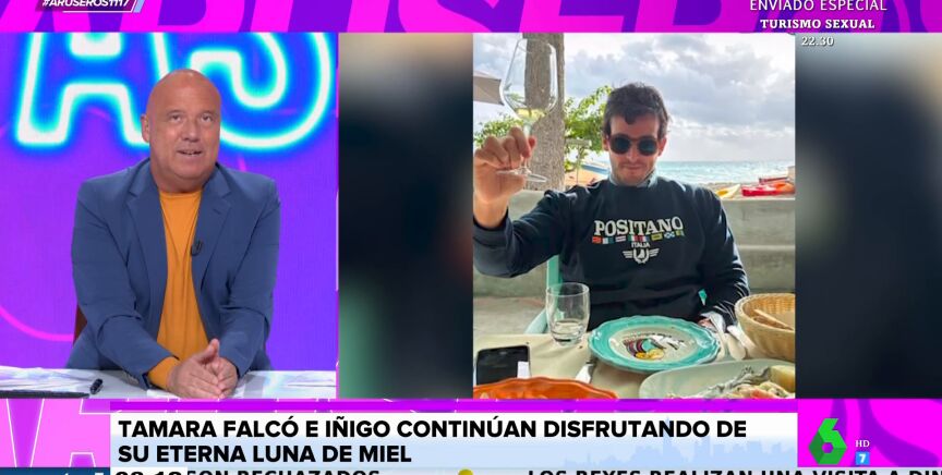 Alfonso Arús no puede parar de preguntarse cuándo trabaja Íñigo Onieva y es que el empresario sigue viajando por el mundo con Tamara Falcó: "Continúan disfrutando de su eterna luna de miel", afirma alucinado el presentador después de que la bod atuviera luegar hace ya varios meses: "Pero aquí, ¿cuándo nos incorporamos al trabajo?".