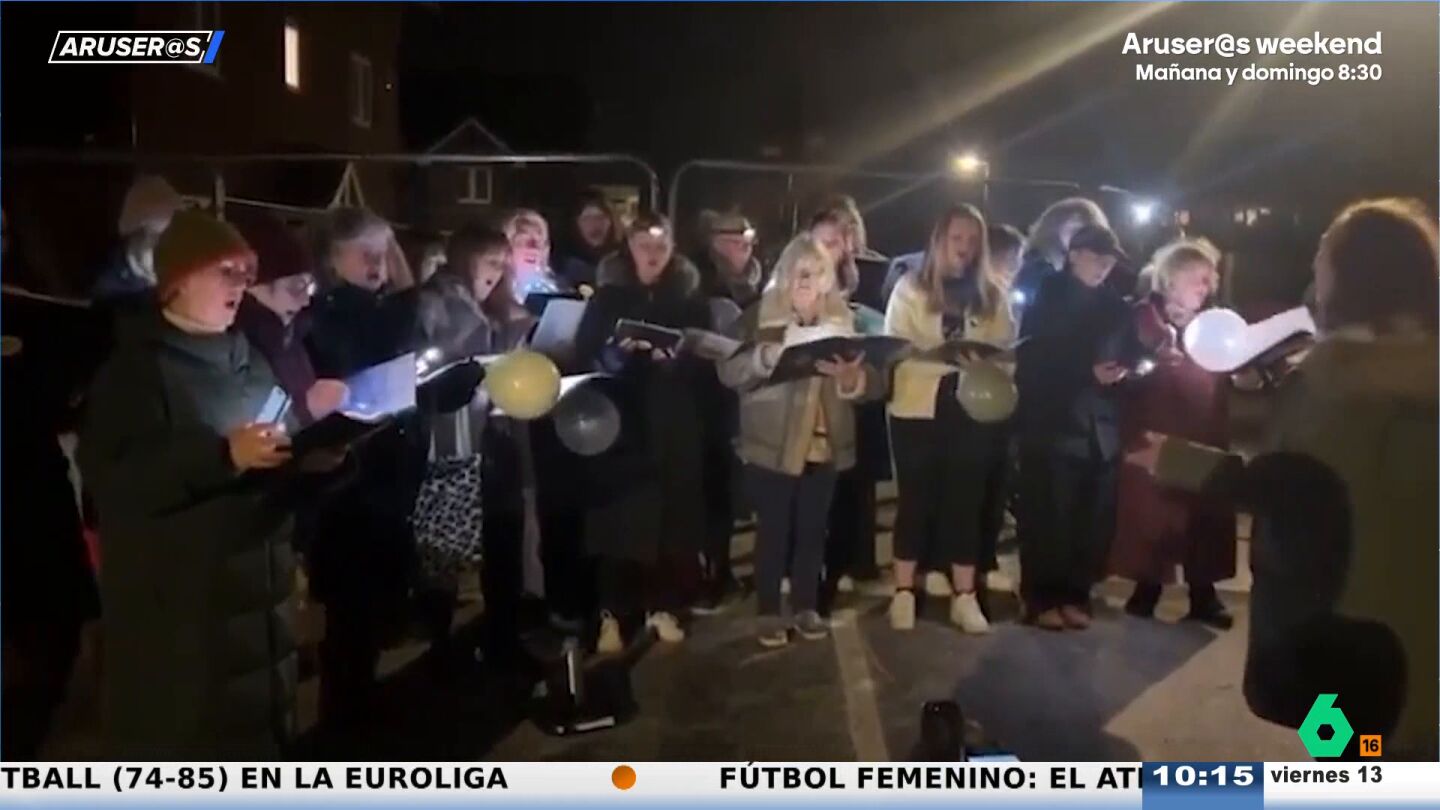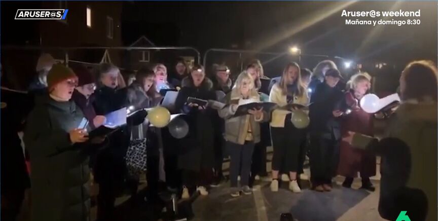 En Godstone, un pueblo de Surrey (Inglaterra), los vecinos han decidido cantarle el "cumpleaños feliz" al agujero que tiene inmovilizado al pueblo. "El socavón mide 20 metros de largo, ha obligado a evacuar a 30 casas y este mes se cumple un año desde que apareció", explica el presentador de Aruser@s entre risas.