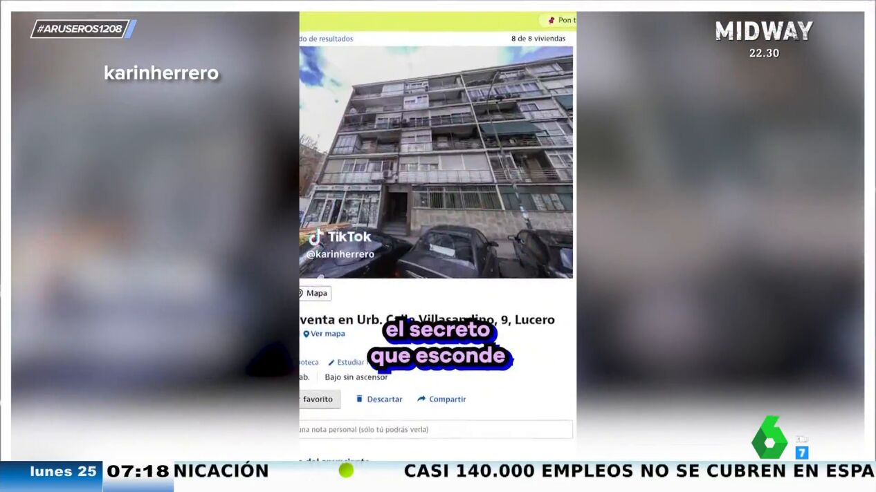 Así lo ha desvelado @karinherrero en TikTok, que desgrana cada detalle del anuncio publicado en un portal inmobiliario online. "Hay gente con mucha confianza y luego está el que te vende un piso okupado". En la descripción, se detalla que "debido al estado okupacional del activo no se pueden realizar visitas al mismo". Eso sí, "en sus inmediaciones, dispone de todo tipo de servicios". "Como un hostal, en el que podrás alojarte porque en tu piso no entras ni de puta coña con el okupa dentro", comenta el tiktoker.