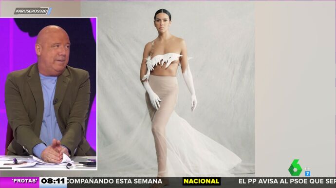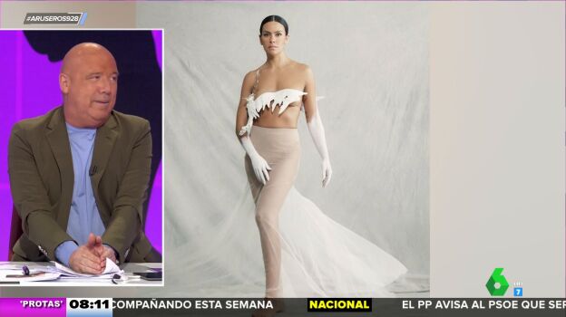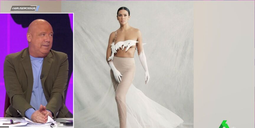 "A mí me recuerda a losretos virales que hacemos aquí siempre de personalidad, de qué es lo que ves. En función de lo que veáis, seguramente vuestra personalidad será una o será otra", comenta Alfonso Arús con los colaboradores de Aruser@s con respecto al vestido elegido por Cristina Pedroche para presentar las campanadas. "Yo, la paloma, no la veo, pero una mantarraya sí", asegura el presentador del programa.