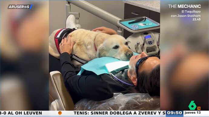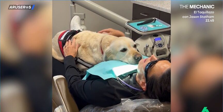 La cariñosa actitud y manera de transmitir tranquilidad de este Golden Retriever han conquistado las redes y el plató de Aruser@s. Cada vez es más habitual ver a perros de terapia ayudando en hospitales, residencias o colegios. Y ahora, también han llegado al dentista.