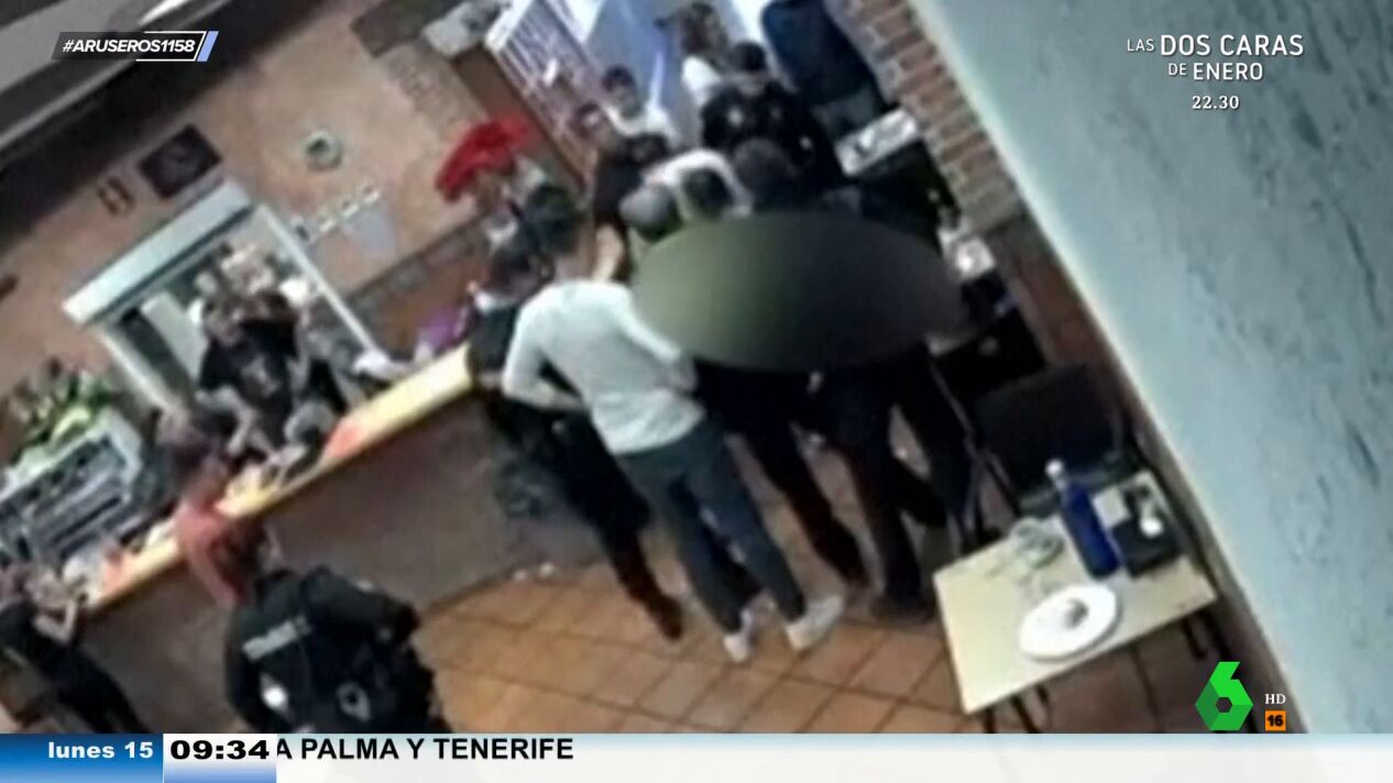 Las cámaras de seguridad de este bar de Alicante captan el momento en el que un hombre, cliente de este establecimiento, se atraganta y casi llega a asfixiarse por culpa de un torrezno. Por suerte, había dos policías en el recinto.