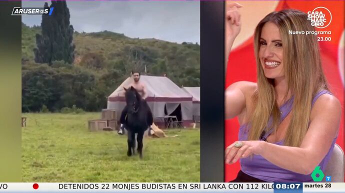 "¿Quién es ese hombre?", comienza a cantar Rocío Cano cuando Alfonso Arús le enseña este vídeo protagonizado por Miguel Ángel Silvestre montando a caballo en su último rodaje.