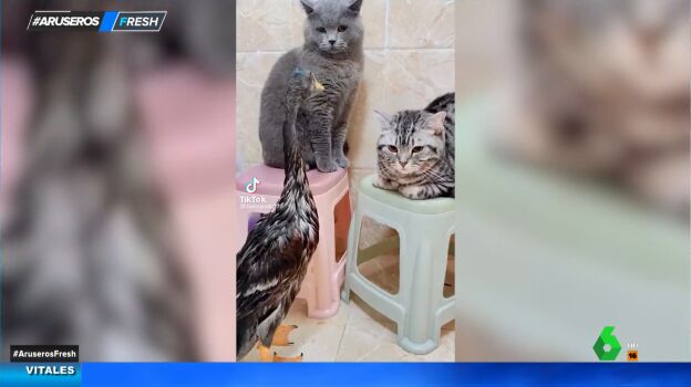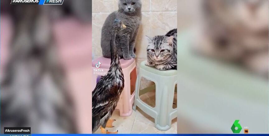 "Si quieres otra mascota para casa, no compres un pato", le advierte Alfonso Arús a Alba Gutiérrez, la colaboradora experta en gatos de Aruser@s que convive con algunos felinos en casa. "Los gatos y los patos no se llevan bien", asegura el presentador del programa justo antes de dar paso al vídeo viral que lo demuestra.