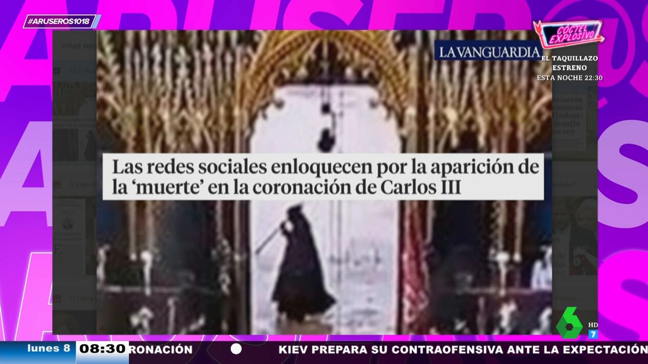 Alfonso Arús analiza junto al resto del equipo de Aruser@s los detalles de lacoronación del rey Carlos III y Camila. Uno de los detalles más llamativos fue un vídeo de "la aparición de la muerte en la coronación" que ha hecho revolucionar las redes sociales.