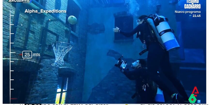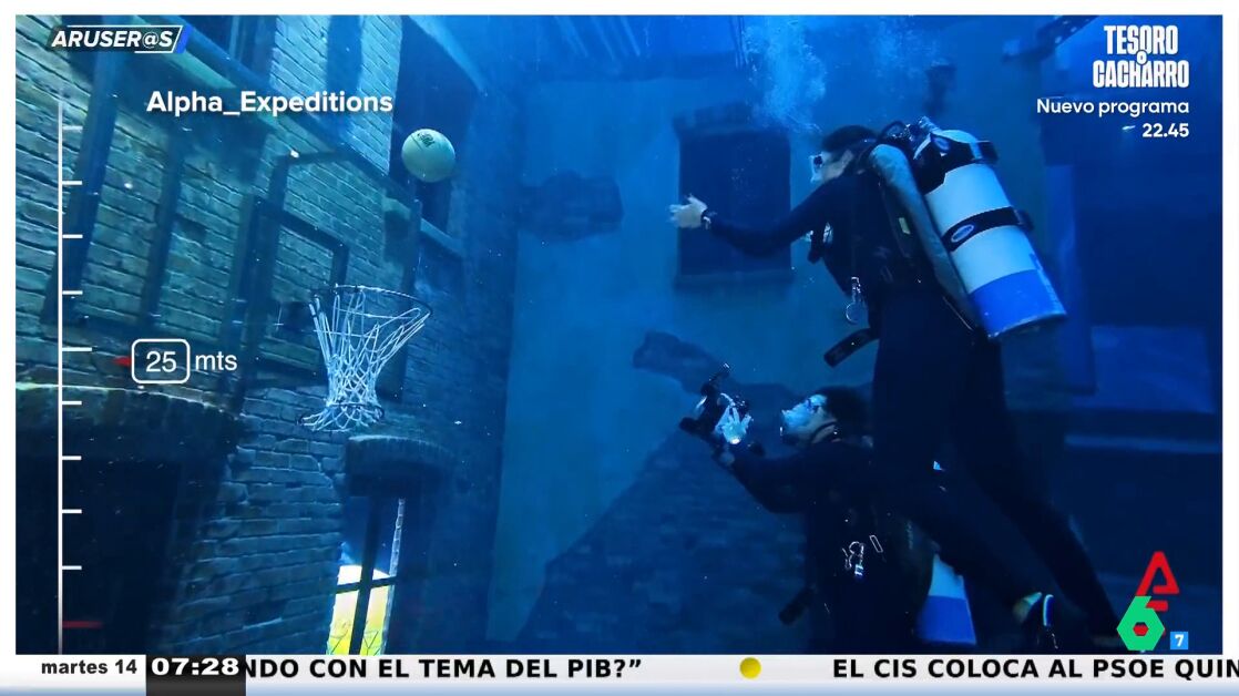 "Te permiten llegar hasta el fondo, donde tienes hasta siete atmósferas de presión sobre tu cuerpo", remarca Alpha, quien muestra cómo es jugar una partida de baloncesto en lo más hondo: "Es como estar en el espacio".