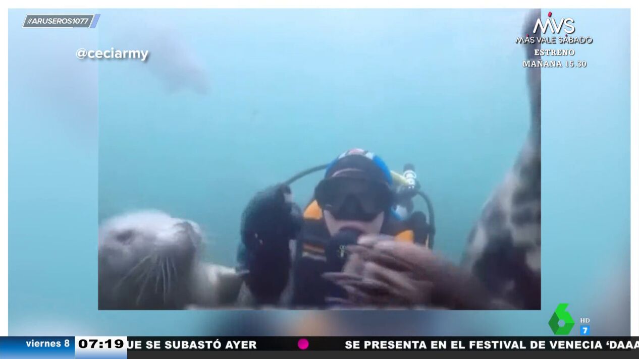 "¿Sabe lo que está haciendo? ¿Es pura casualidad? ¿Es suerte?", pregunta Alfonso Arús a la bióloga de cabecera de Aruser@s, Evelyn Segura, tras ver este vídeo viral en el que parece que una foca intenta salvar a un hombre de ahogarse.