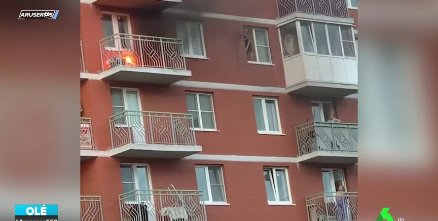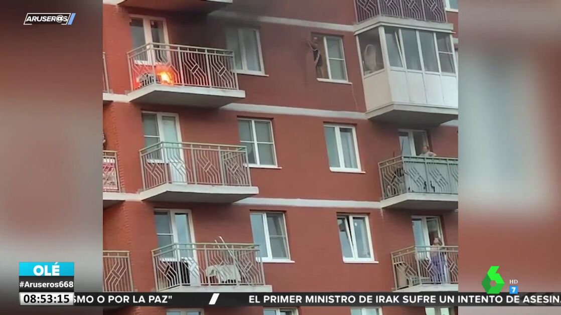 El balcón de una de las viviendas de este bloque que aparece en el vídeo comenzó a arder. Los vecinos llamaron a los bomberos pero ellos mismos consiguieron frenar las llamas antes de que llegaran.
