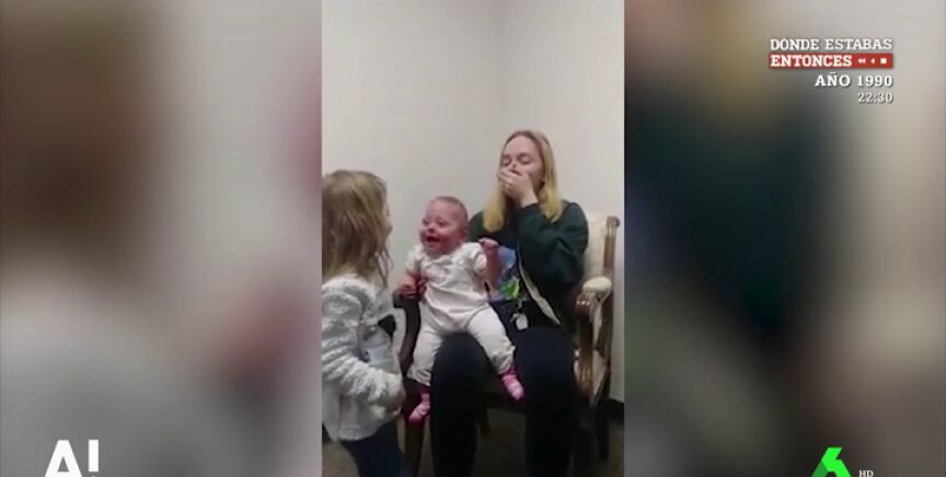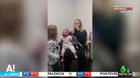 Así reacciona un bebé al poder escuchar por primera vez a su hermana y su madre