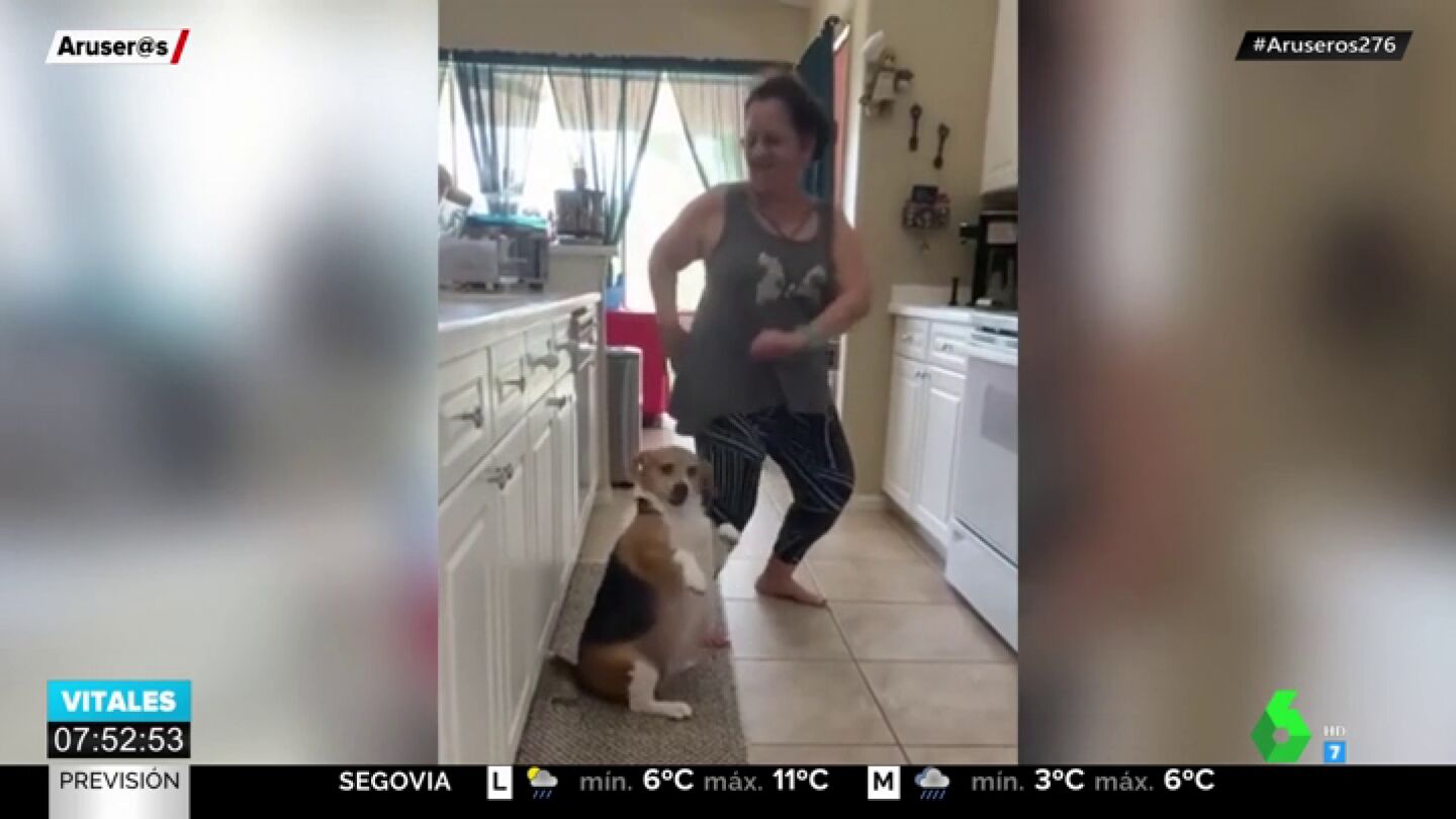 Aruser@s también comentó la reacción de un perro ante la actitud desatada de su dueña que se hizo viral. El vídeo lo protagoniza una mujer "dándolo todo" en el salón de su casa. Sin embargo, la que le roba el protagonismo es su mascota.